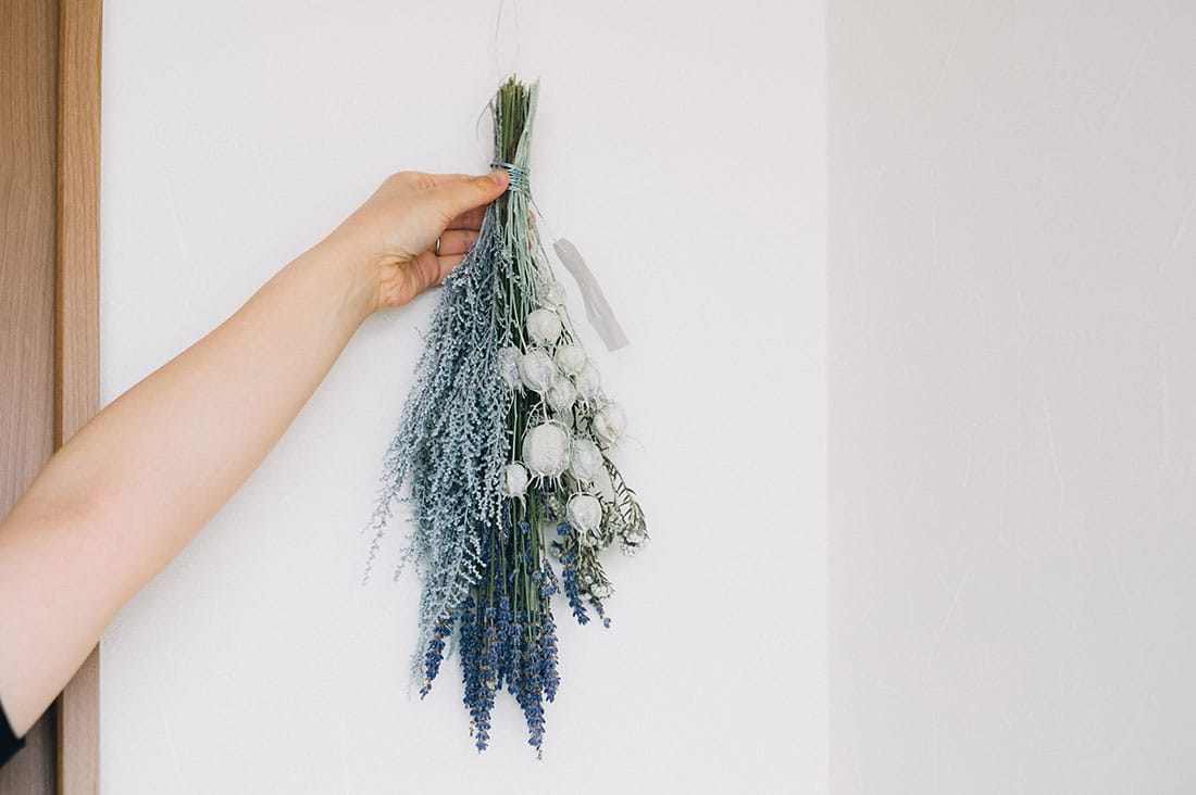 海外風インテリアになるラベンダーのドライフラワーの飾り方。