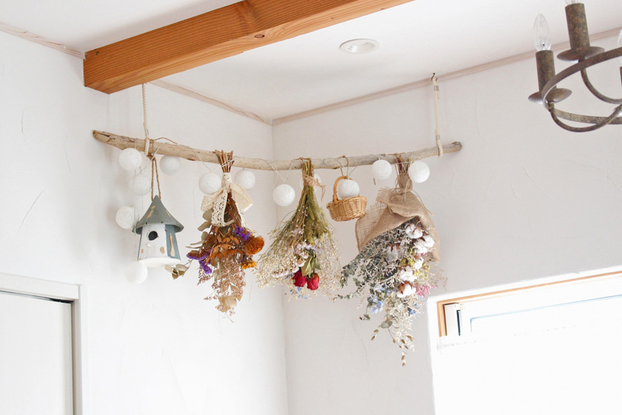 ドライフラワーの吊るし方天井に雑貨をおしゃれに吊るす飾り方。