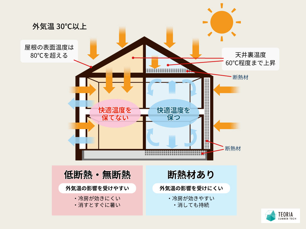夏のお家が暑い 2階が暑い原因と天井断熱の必要性 動画ありセルロースファイバー断熱のテオリアランバーテック。