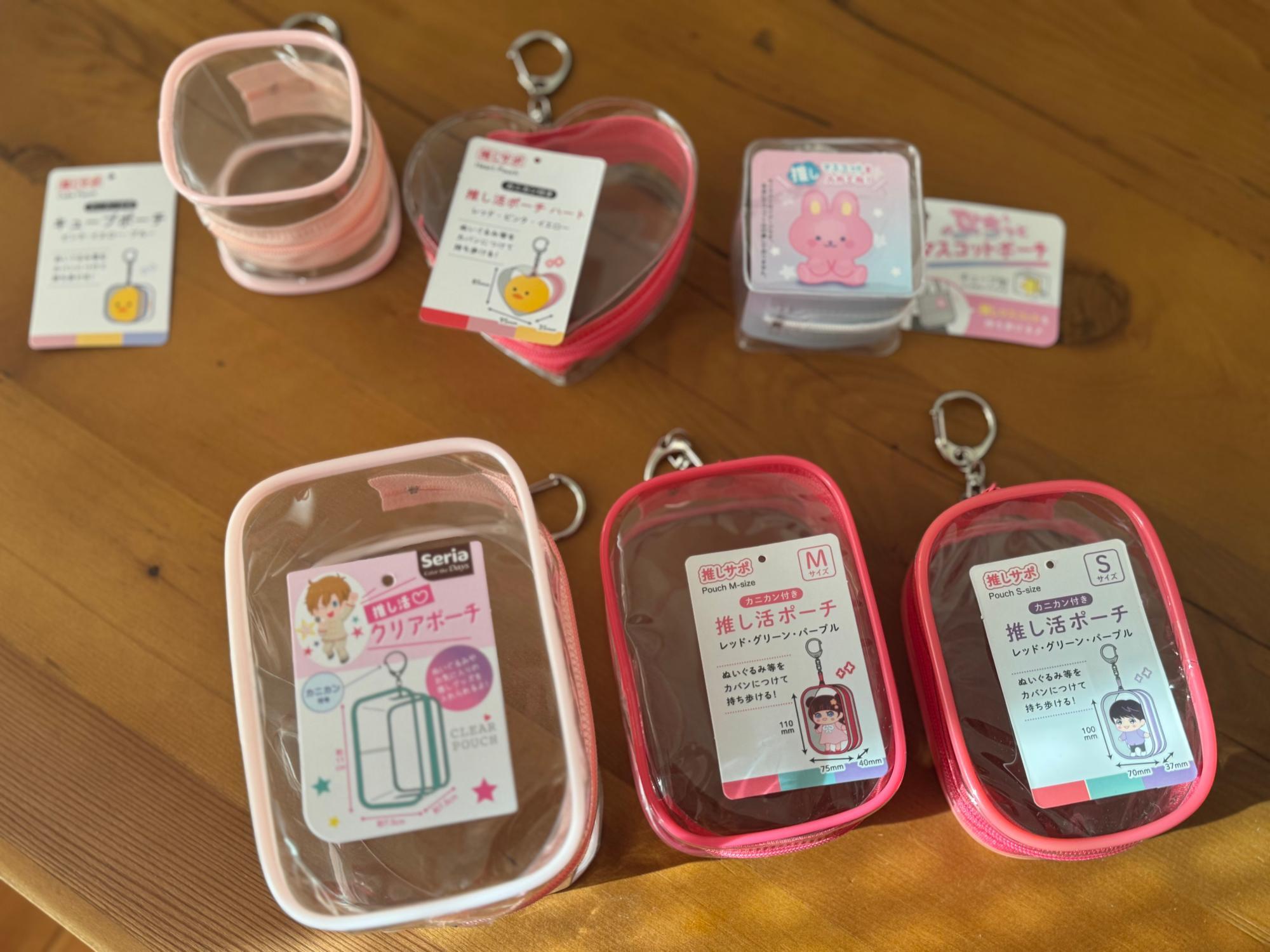 100均ダイソーの推し活グッズ。ポケット付キーホルダーとカラビナ付きポーチ。