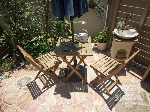 ウッドデッキ→乱石張りテラスへリフォーム!!姫路市外構 ガーデン エクステリアアセンブルガーデン。