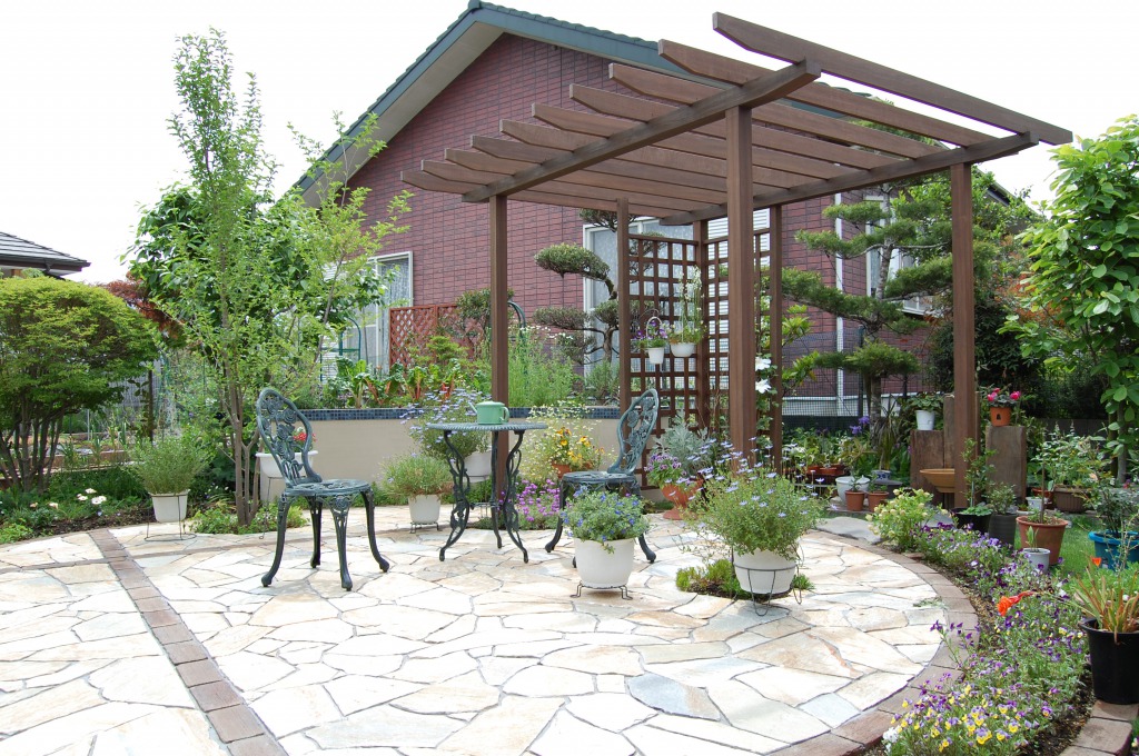お庭の乱形石テラス お庭と外構、エクステリアのデザイン&リフォームグリーンケア 横浜 川崎。