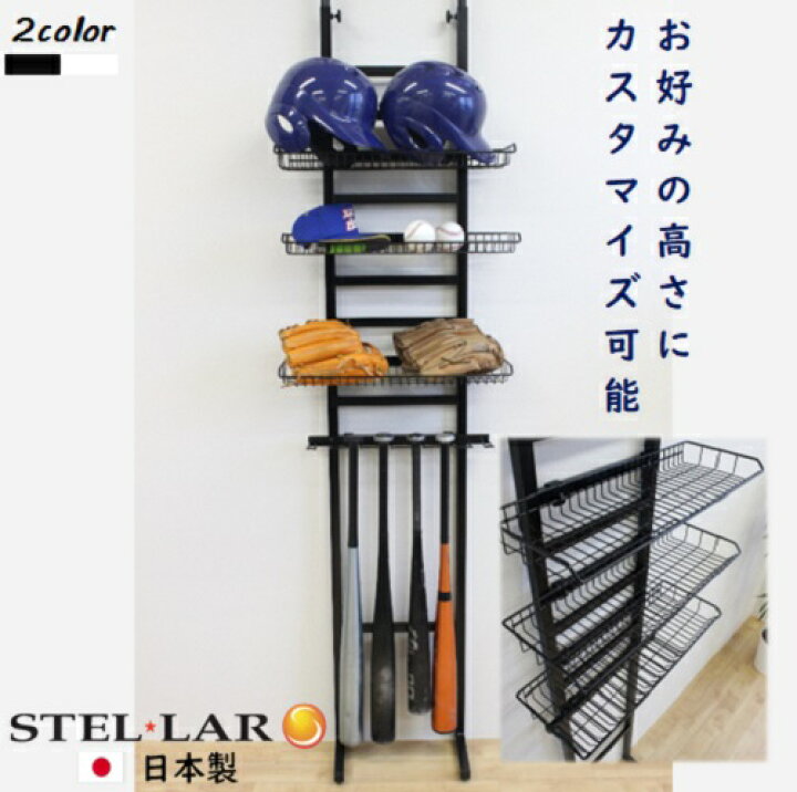 玄関収納 突っ張り 野球 バットスタンド 野球 野球道具 収納ラック 壁面 整理 整頓 スチール ラック グラブ グローブ 野球 ソフトボール バット12本 ヘルメット 高さ調節 玄関収納 スリム 少年野球 野球道具突っ張りラック 黒 白 000524 000547ステラNEXT。