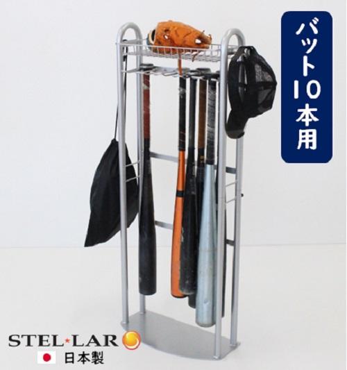 玄関用バットスタンド 玄関 野球道具 収納 整理 整頓 備品 スチール ラック グラブ グローブ スタンド 野球 ソフトボール バット 10本フック付き バット ボール ヘルメット スポーツバック 玄関収納 少年野球 スポーツ 少年団 国産96929 狭い玄関に野球道具を収納。