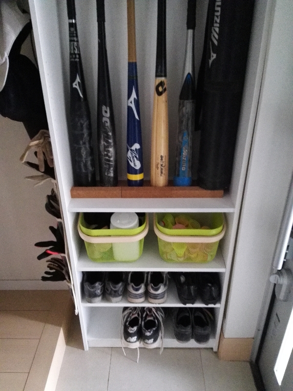 野球道具の収納 玄関のシューズクロークにバットやグローブをまとめて保管!全貌を大公開Aya blog-猫と料理と植物と。