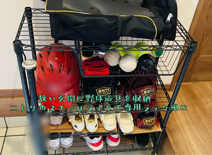 狭い玄関に野球道具を収納!ニトリのスチールラックで専用ラック風にはまじMAMA's WORKs。