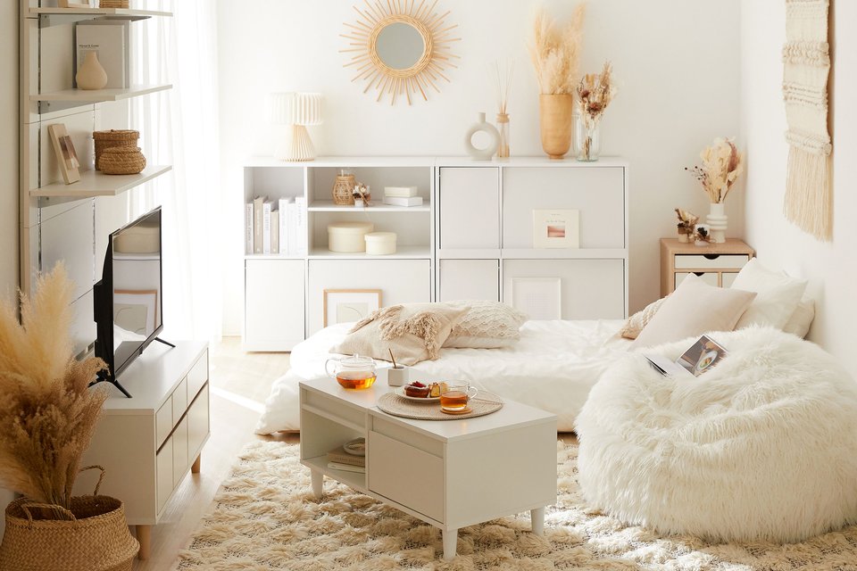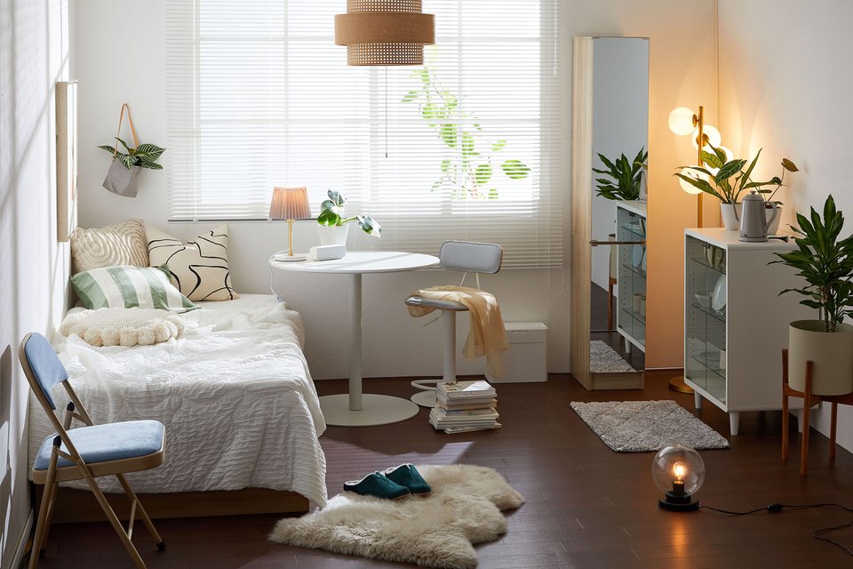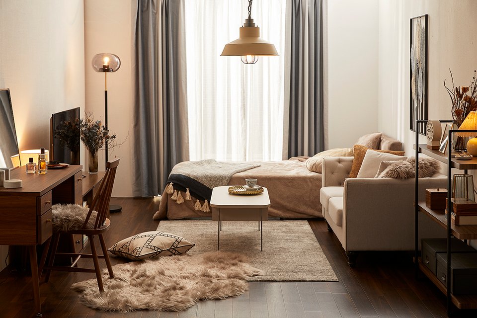 ダークブラウン床と淡い色の組み合わせがおしゃれなワンルームコーデ公式 LOWYA ロウヤ家具・インテリアのオンライン通販。