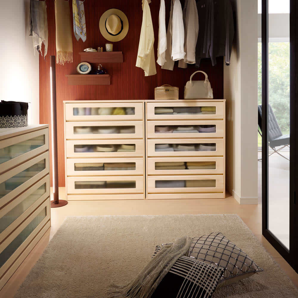ウォークインクローゼット用収納家具チェスト桐材国産家具。