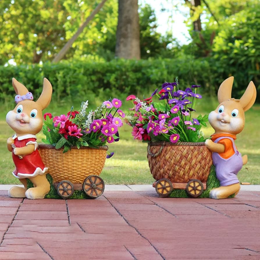 庭用の屋外彫像、玄関ポーチ用の人工白ウサギの植木鉢、屋外の庭や中庭用の樹脂彫刻、家の装飾工芸品ガーデン 置物 模造石 ソーラー置物 耐久性 耐候性庭の装飾 灯籠 ソーラーライト ガーデンライト かわいい 雰囲気作り 屋外 庭 デコレーション 自動点灯。