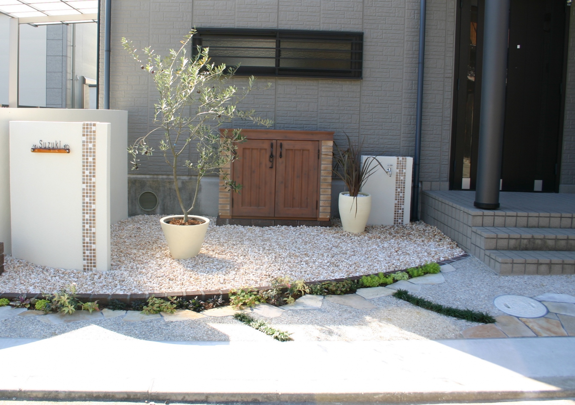 姫路市新築外構・建物の雰囲気と動線を考えた外構から考えた玄関ポーチ姫路市外構 ガーデン エクステリアアセンブルガーデン。