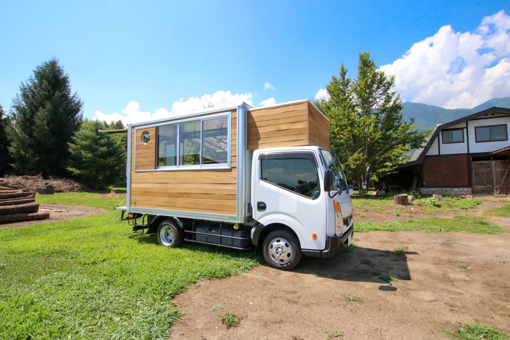 天然木の外装でひときわ目を惹く☆おしゃれな キッチンカー が出来ました!施工事例株式会社テオリアランバーテック長野県全域の住宅メンテナンスサービス。
