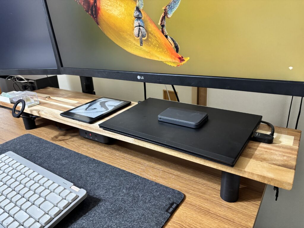 WOODPRO楽天 アカシア集成材 デスクシェルフ モニター台。