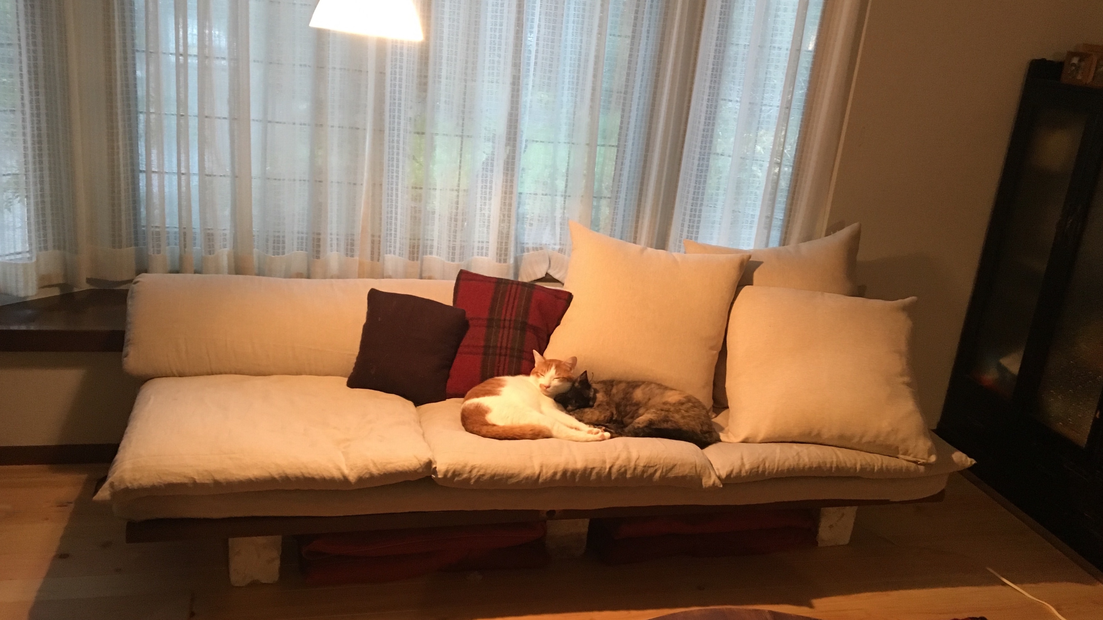 ソファクッションをベッドマットレスで手作りするDIY : コモリ夫妻。