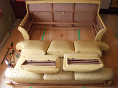 ソファの修理事例家具クリニック革・布の張り替え・クッション製作・キズ修理など 全国対応いたします。