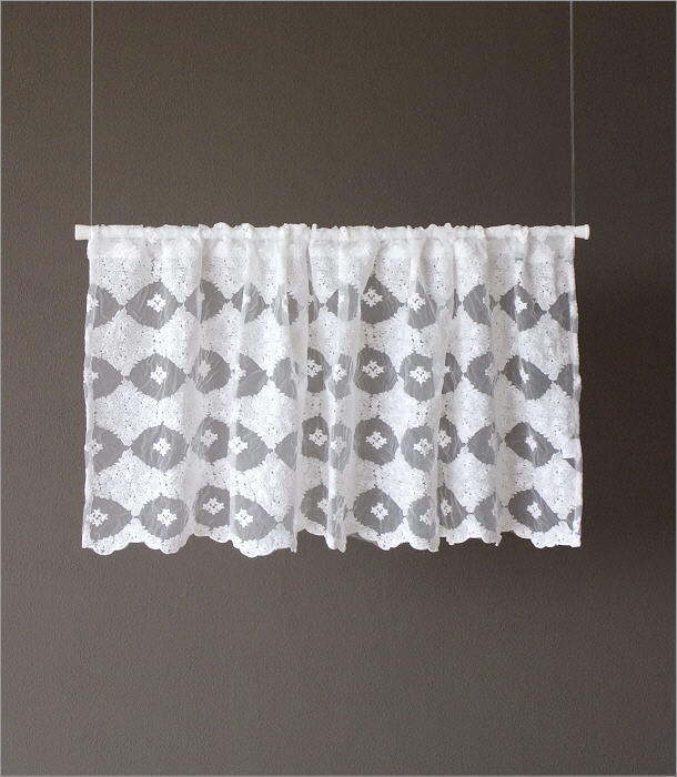 カフェカーテン 小窓用 カーテン キッチン レースカフェカーテン 喫茶店 洗面所 出窓 おしゃれ パウダールーム 間仕切り 飾り チュール フラワーモダン インテリア 目隠し トイレ のれん ローグ シンプル 簡約 ホワイト YJSO。