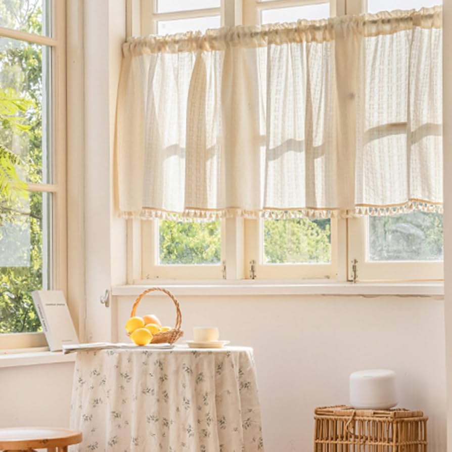 Amazonpureaqu おしゃれ ビーズのスパンコール 白いカフェカーテン 短い 小窓 レースカーテン パーティション キッチン 間仕切り半 窓カーテン お風呂 洗面所 居間 喫茶店 1個 幅100cm×丈50cmカフェカーテン オンライン通販。