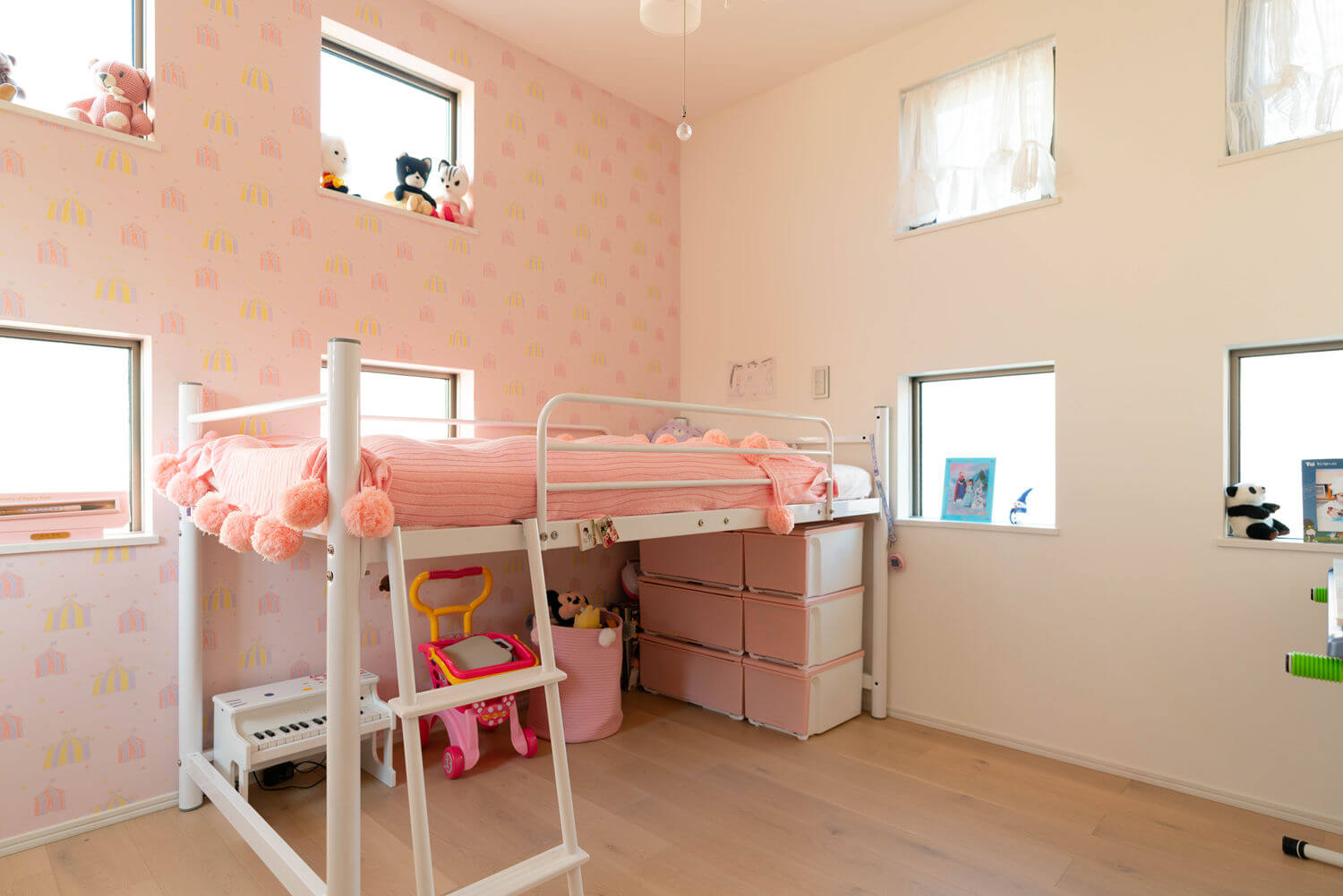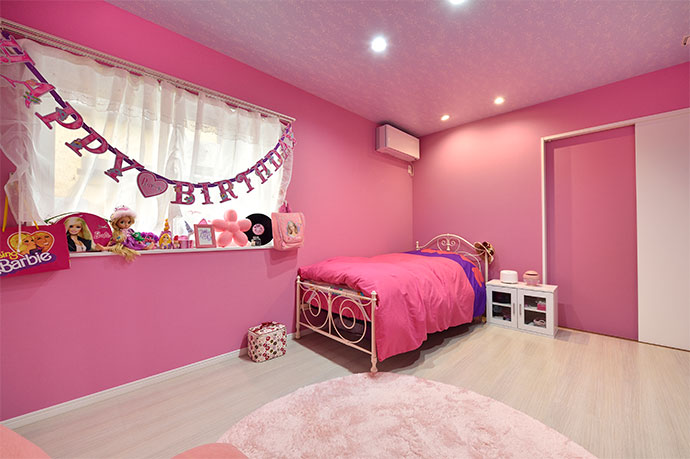 ピンクのアクセントクロスの子供部屋子供部屋施工例ギャラリーケイアイプレストは新築一戸建・土地販売の不動産会社。ケイアイスター不動産グループ。