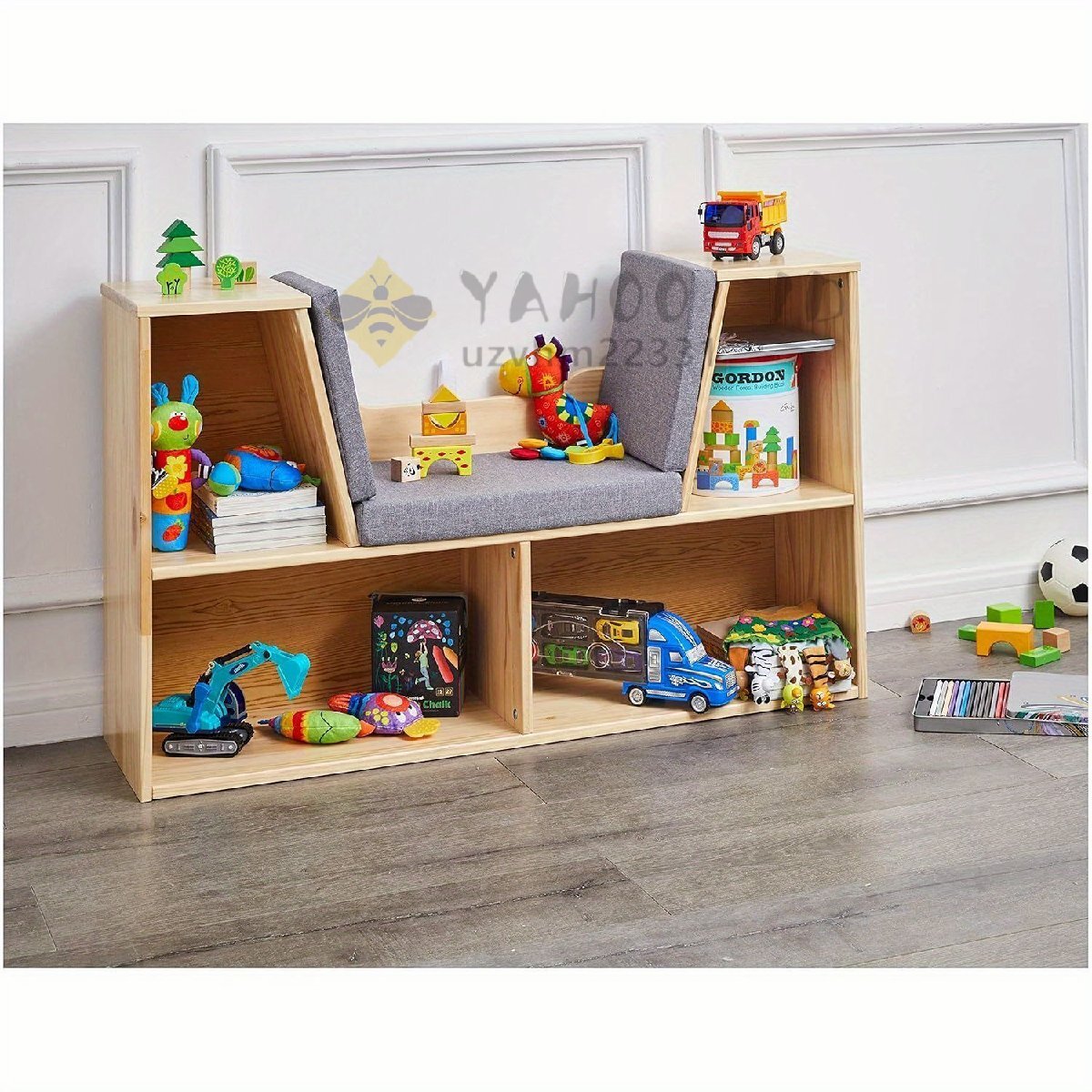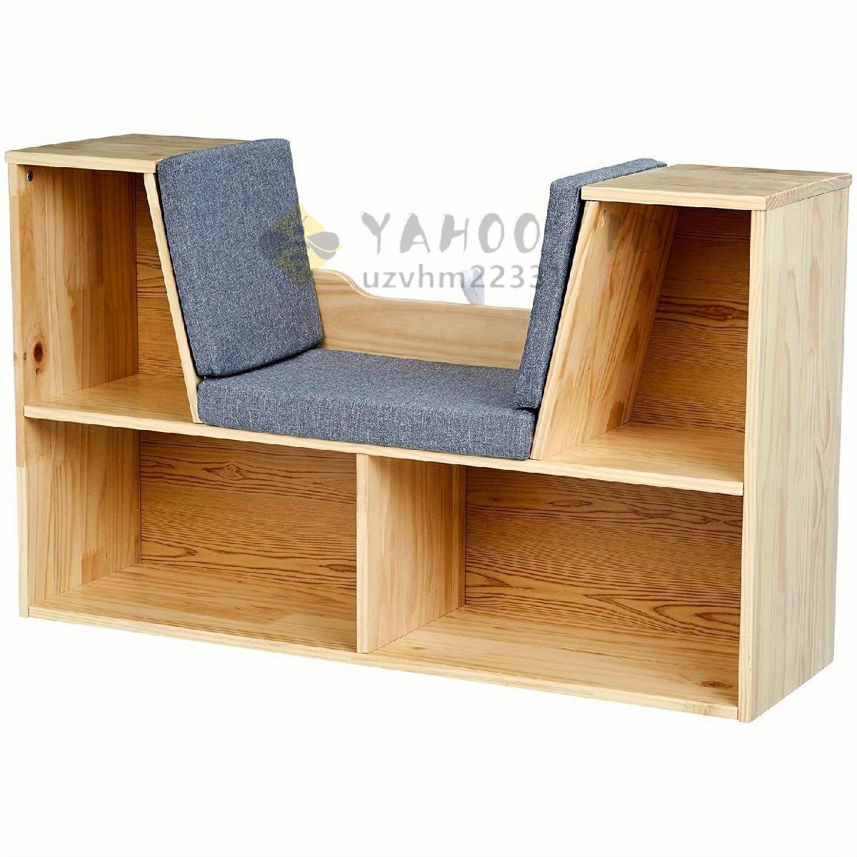 棚 木製 椅子付 座れる 本棚 収納棚 ウッドラック おもちゃ 本 花瓶 観葉植物 時計。