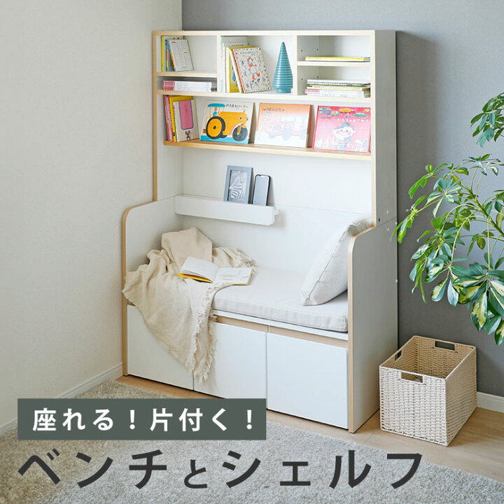 ベンチ シェルフ 絵本棚 おもちゃ収納 マガジンラック 子供用 棚 収納 子供 キッズ こども ホワイト 白 ナチュラル 北欧 本棚 椅子 イス 腰掛け。