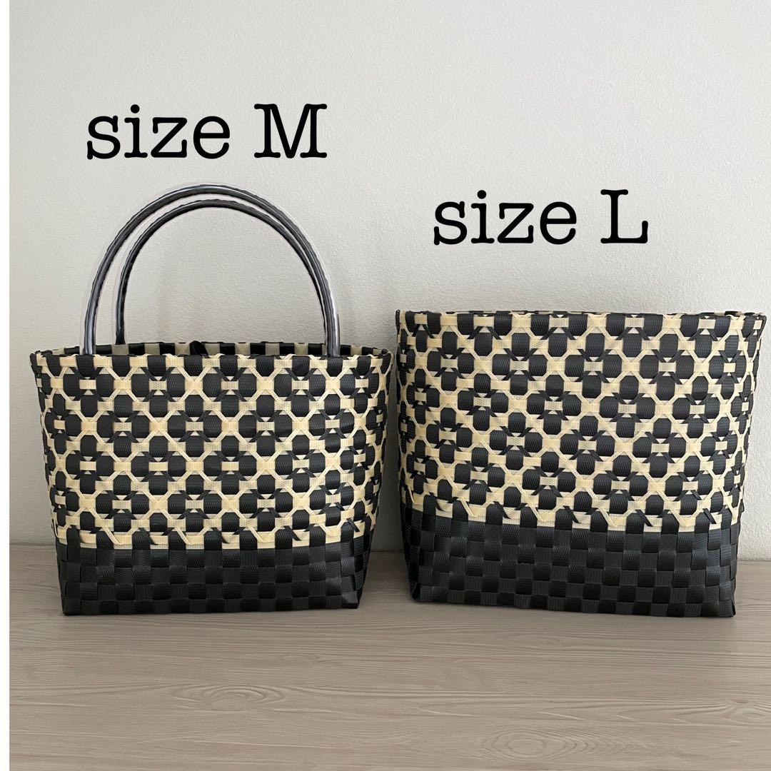 プラカゴバッグ ppバンド ご注文品 プラかごバッグ 花柄 Mサイズ ブラック プラカゴ。