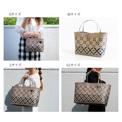 プラカゴバッグ ブラウン ベージュ 花 プラかごバッグ Lサイズ 花柄 ベージュ プラカゴ プラカゴバッグ。