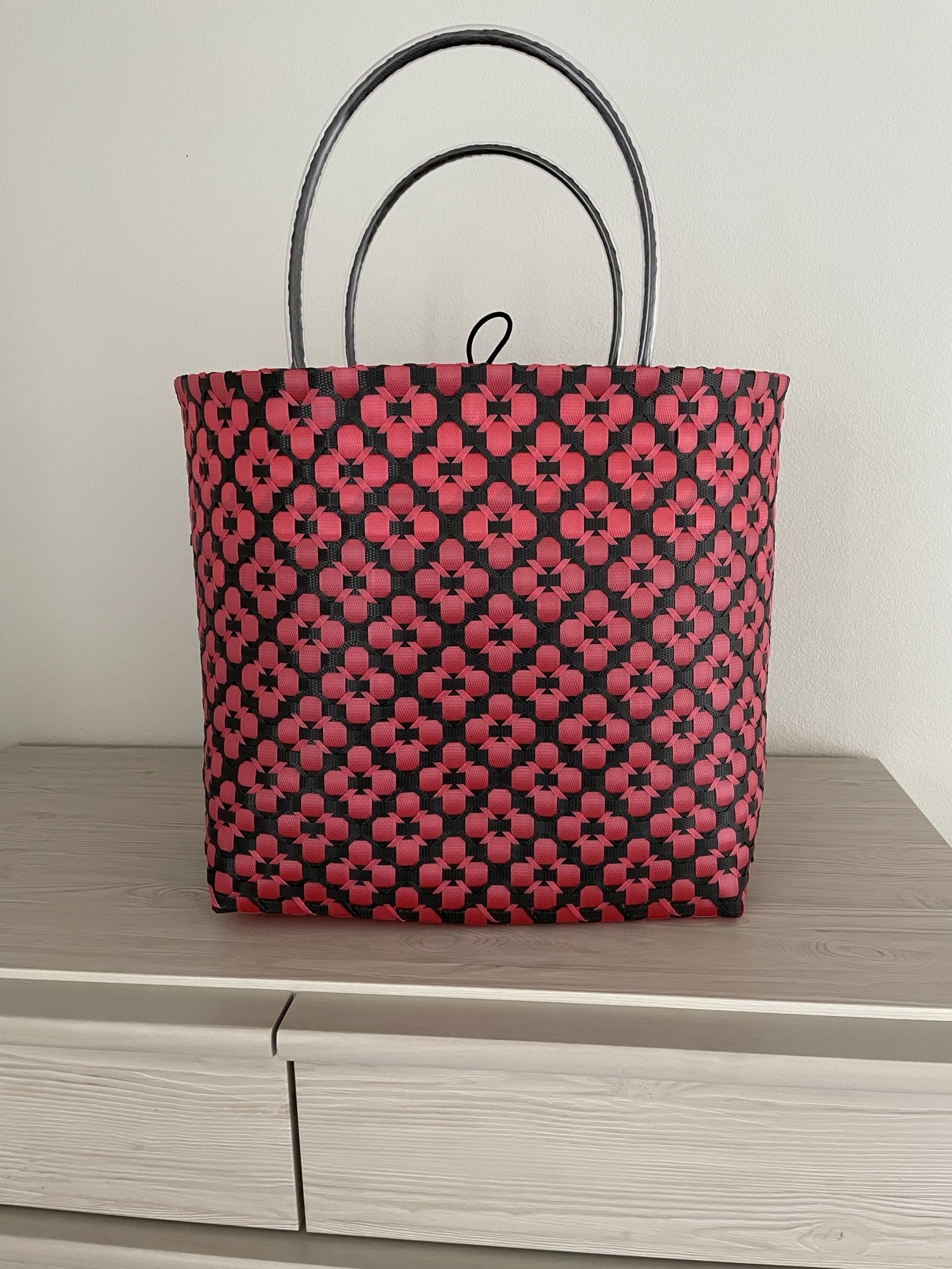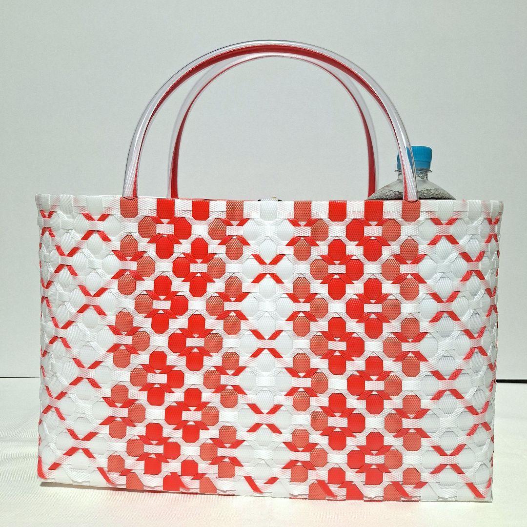 プラかごバッグ Mサイズ 花柄 レッド系 プラカゴ ppバンド プラカゴバッグ ppバンドバッグ かごバッグ kanamorimonaka 通販13382283Creema クリーマ。