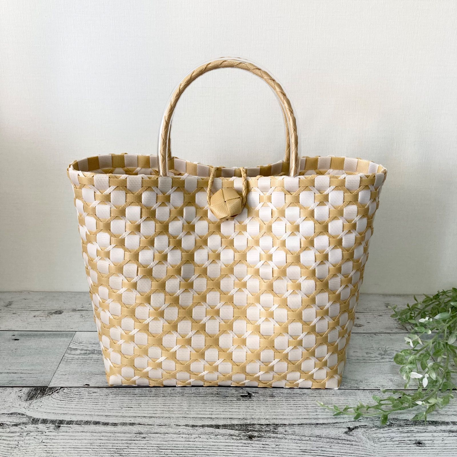プラカゴ 花柄 白×黄色 MCo-chaお洒落なプラカゴを上質なPPバンドで powered by BASE。