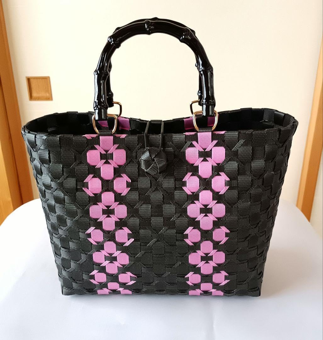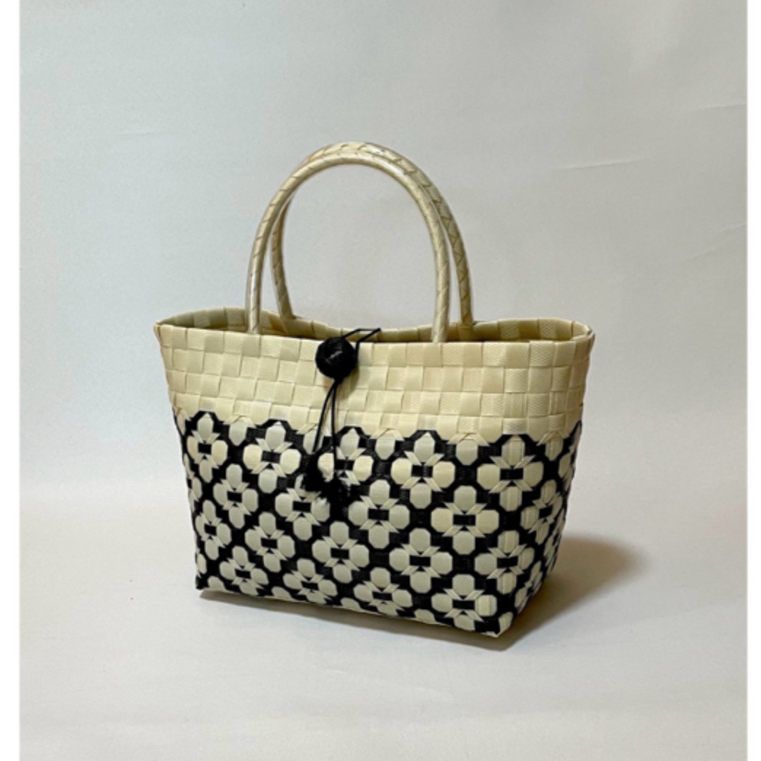 プラかごバッグ 花柄 Mサイズ ブラック プラカゴ プラカゴバッグ ppバンド ppバンドバッグ かごバッグ kanamorimonaka 通販12730651Creema クリーマ。
