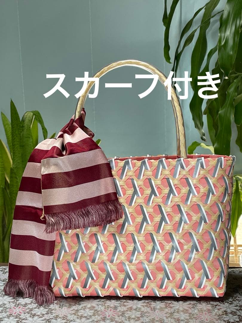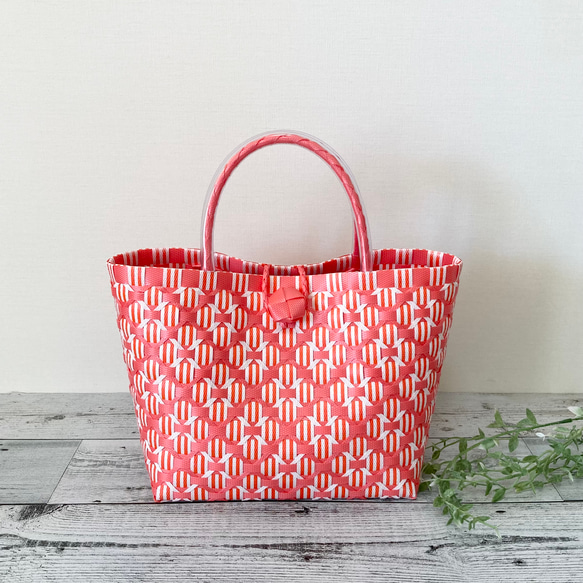 プラかごバッグ Sサイズ 花柄 サーモンピンク 2way プラカゴ プラカゴバッグ ppバンド かごバッグ kanamorimonaka 通販16982751Creema クリーマ。