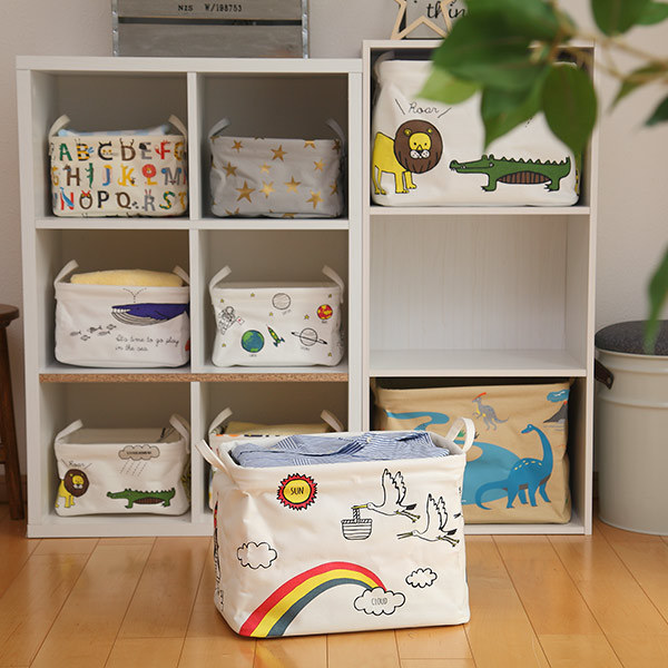 収納ケース 幅23×奥行18×高さ14cm アルファベット アンファン ピリエ布 収納ボックス 収納 小物 ケース ボックス ファブリック小物収納 小物入れ おもちゃ ベビー用品 おもちゃ箱 持ち手付き おしゃれ。
