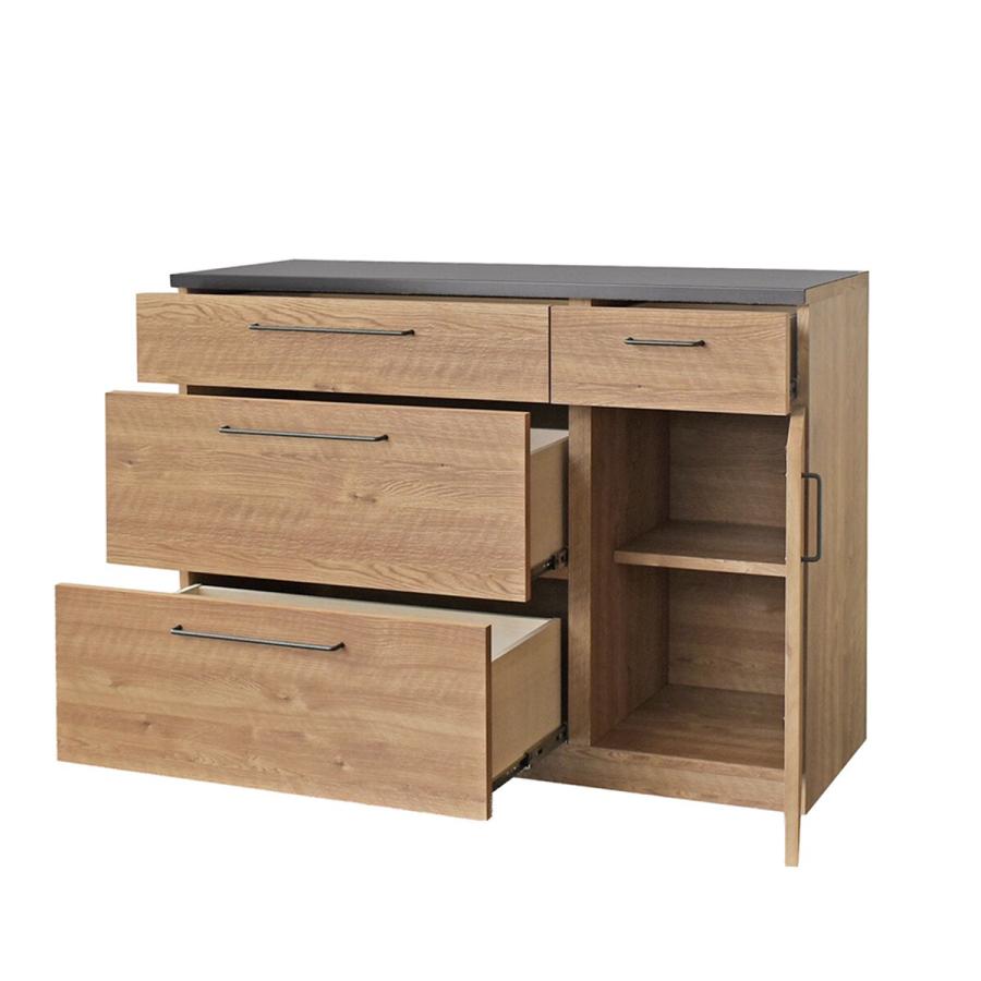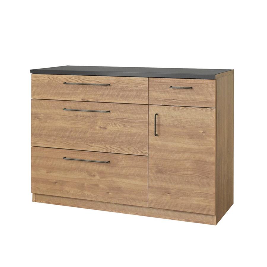 特殊鋼板天板 ヴィンテージ風カウンター引き出し+扉 幅120cmニトリ 特殊鋼板天。