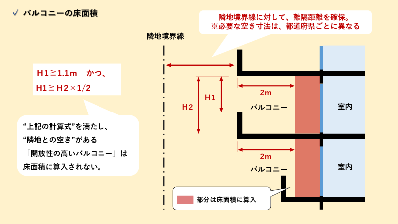 バルコニーは床面積に算入されない。幅2m超など算入時の規定も解説家選びネット。