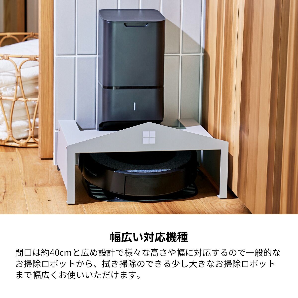 日本製 掃除機 ロボット収納 スッキリ 省スペース ルンバ基地 シンプル設計 バスケット付き 充実。