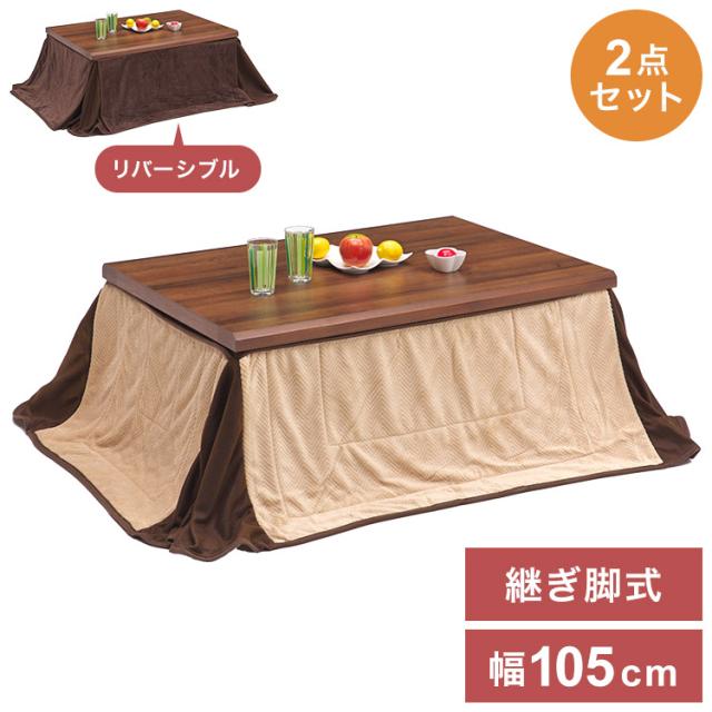 こたつ2点セット こたつテーブル こたつ布団 幅105cm 長方形 木製 継脚 高さ調節 センターテーブル ローテーブル 省エネ 節電 エコ 暖房器具リビング おしゃれ 北欧 インテリア 炬燵 コタツ シンプル 代引不可送料無料。