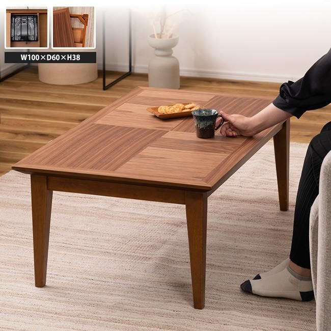 こたつテーブル 本体のみ 100x60 おしゃれ 北欧 長方形 リビング 石英管ヒーター300W KT-117BR コタツ 長方形 - インテリアショップKutoLA クトラ。