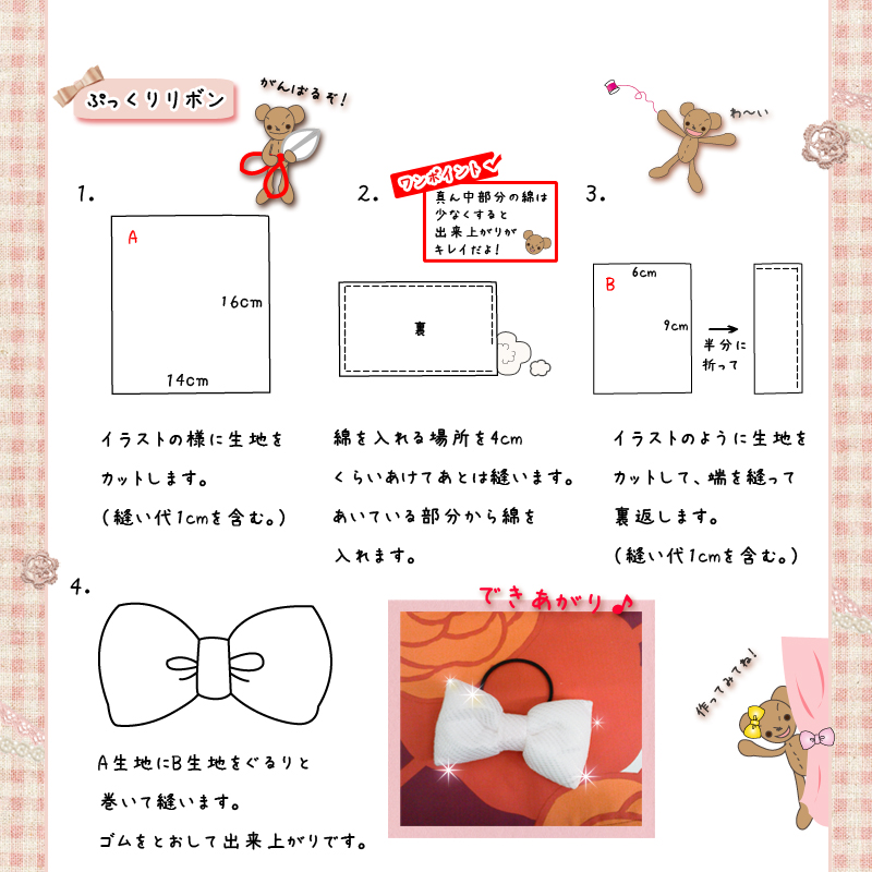 シュシュ リボン ミトン クッション 手作り・作り方カーテン通販 くれない本店。