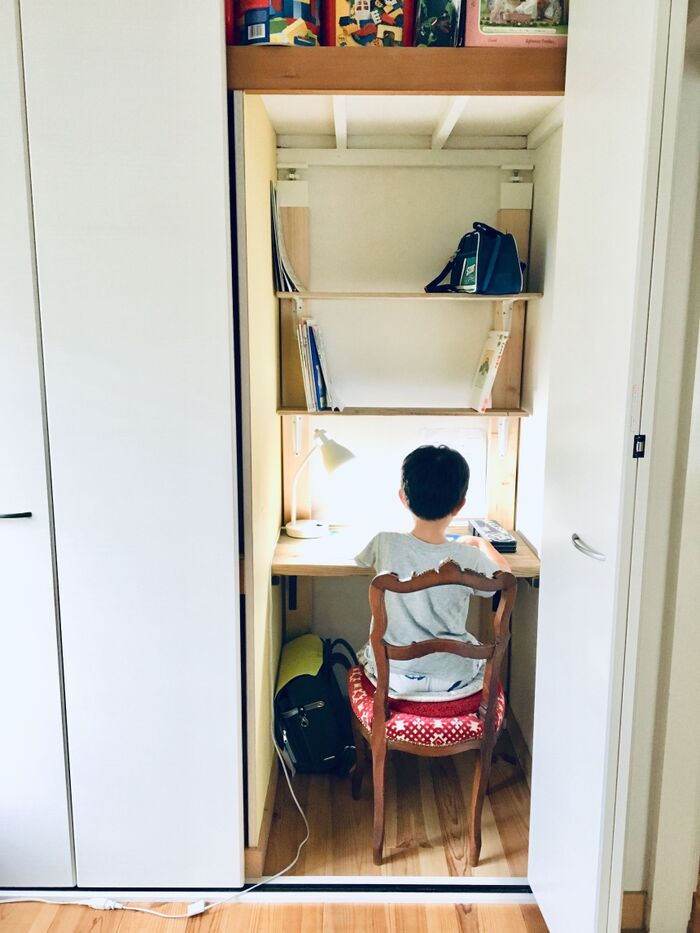 クローゼットの一部を仕事部屋に!効率的な在宅ワークスペースのアイデア。