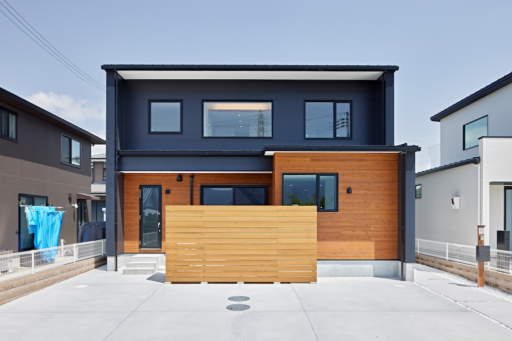 黒ガルバ×木目サイディングのシンプルでかっこいいお家 太陽住宅のフォトギャラリー 豊橋 工務店。