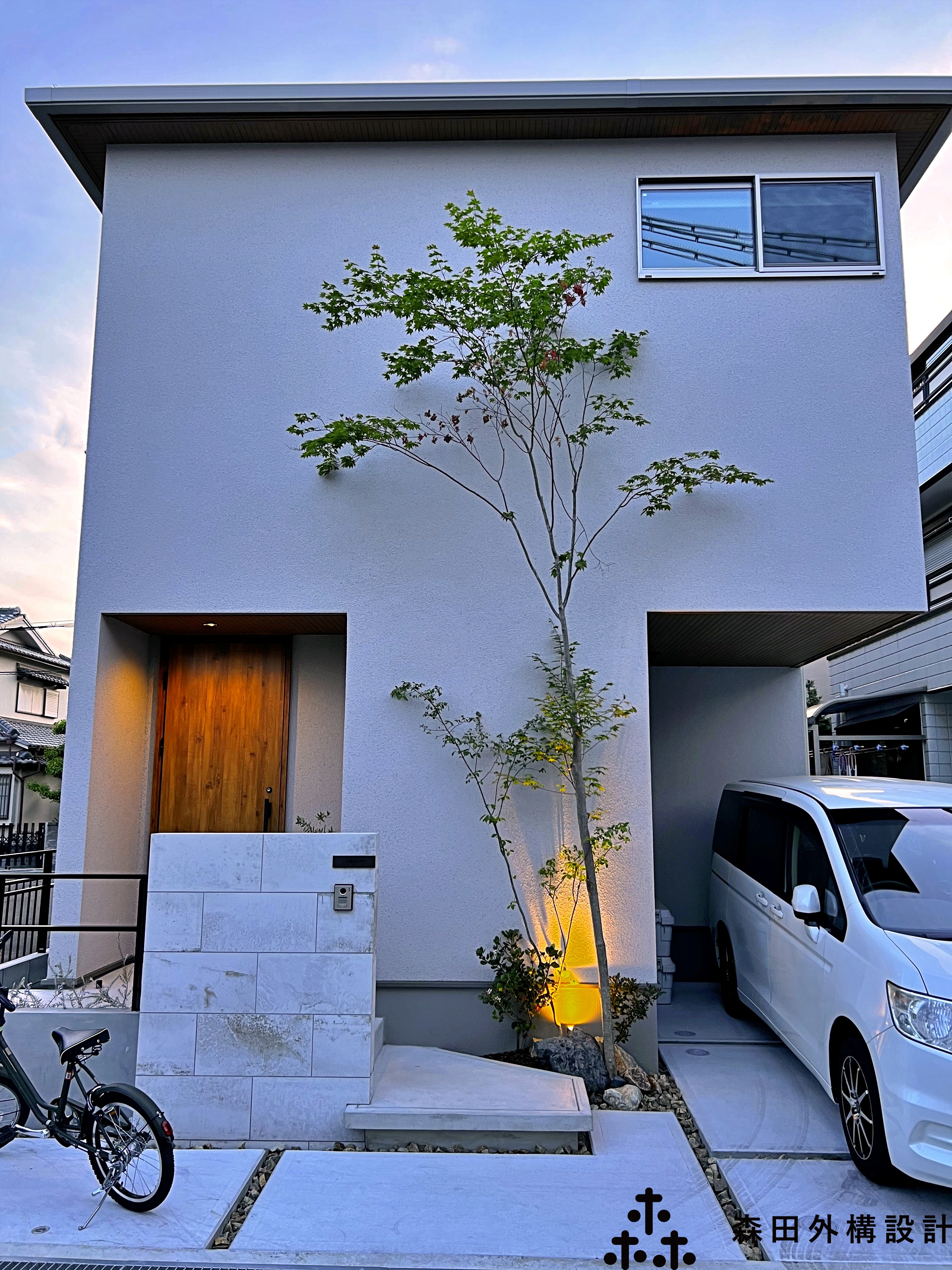 シルバーのガルバリウム外壁と 木目の組み合わせが映える外観は、 モダンでありながら 自然の温もりを感じさせるデザインです. シルバーのガルバリウムは光を美しく反射し、耐候性と耐久性に優れているため、 長期間にわたってその見た目を守ってくれます. 対照的に。