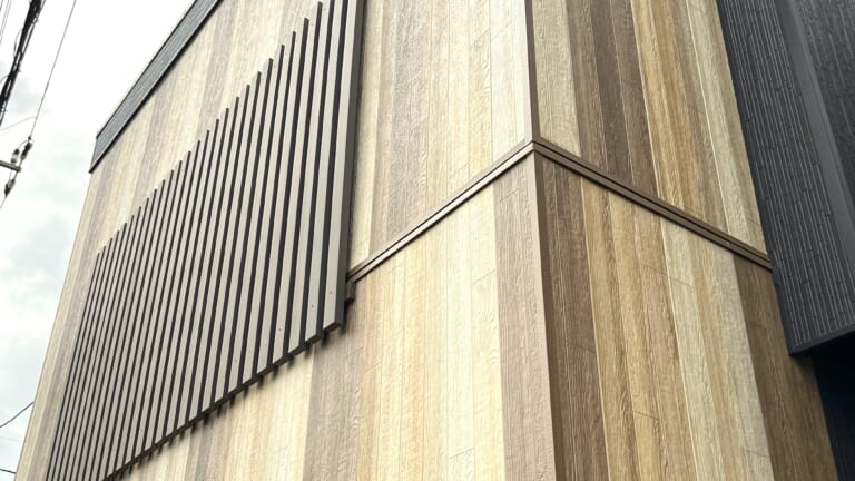 木目調の外壁材と金属サイディングの組み合わせについて屋根修理なら テイガク。