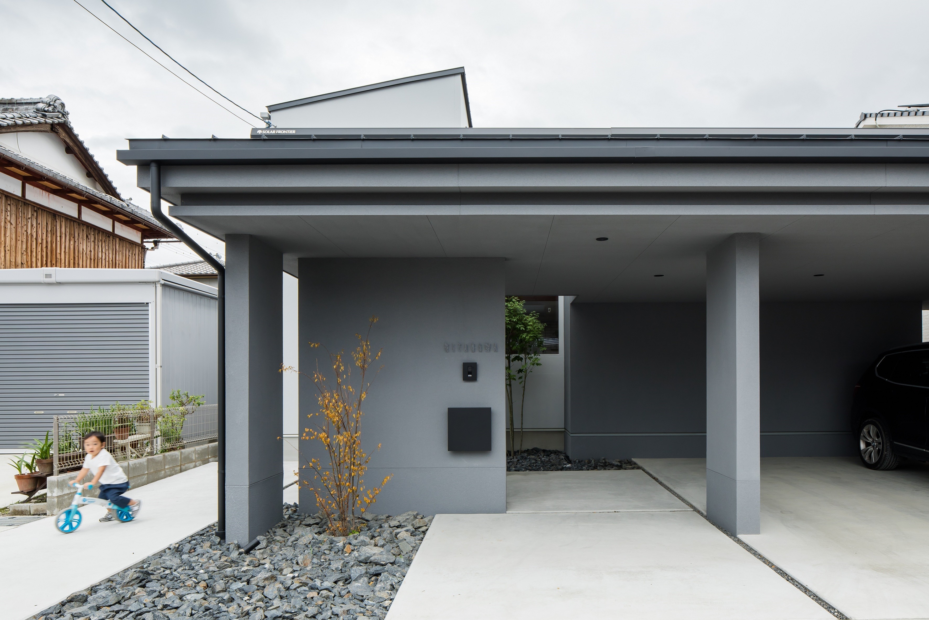 玄関アプローチ 上笠の家 インナーガレージでプライベート空間を作りつつも開放的なリビングのある家- アウトドア事例SUVACO スバコ。