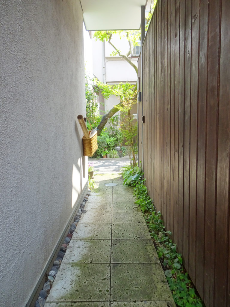 露地のような趣のあるアプローチ 和モダンの美しい家 アトリエのある緩やかに外部と繋がる住宅 東京都目黒区 重量木骨の家。