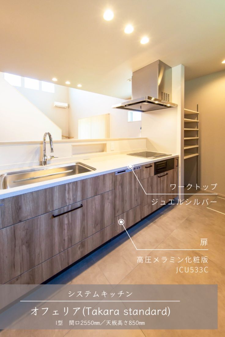 アヤホーム 滋賀 分譲地 新築戸建 注文住宅人気のエイジングストーン柄のキッチンタカラスタンダードオフェリアjk800cシステム キッチンペニンシュラキッチンフラット対面キッチン . 注文住宅で心配なのは追加費用ですが、充実の標準仕様でハイグレードもお。
