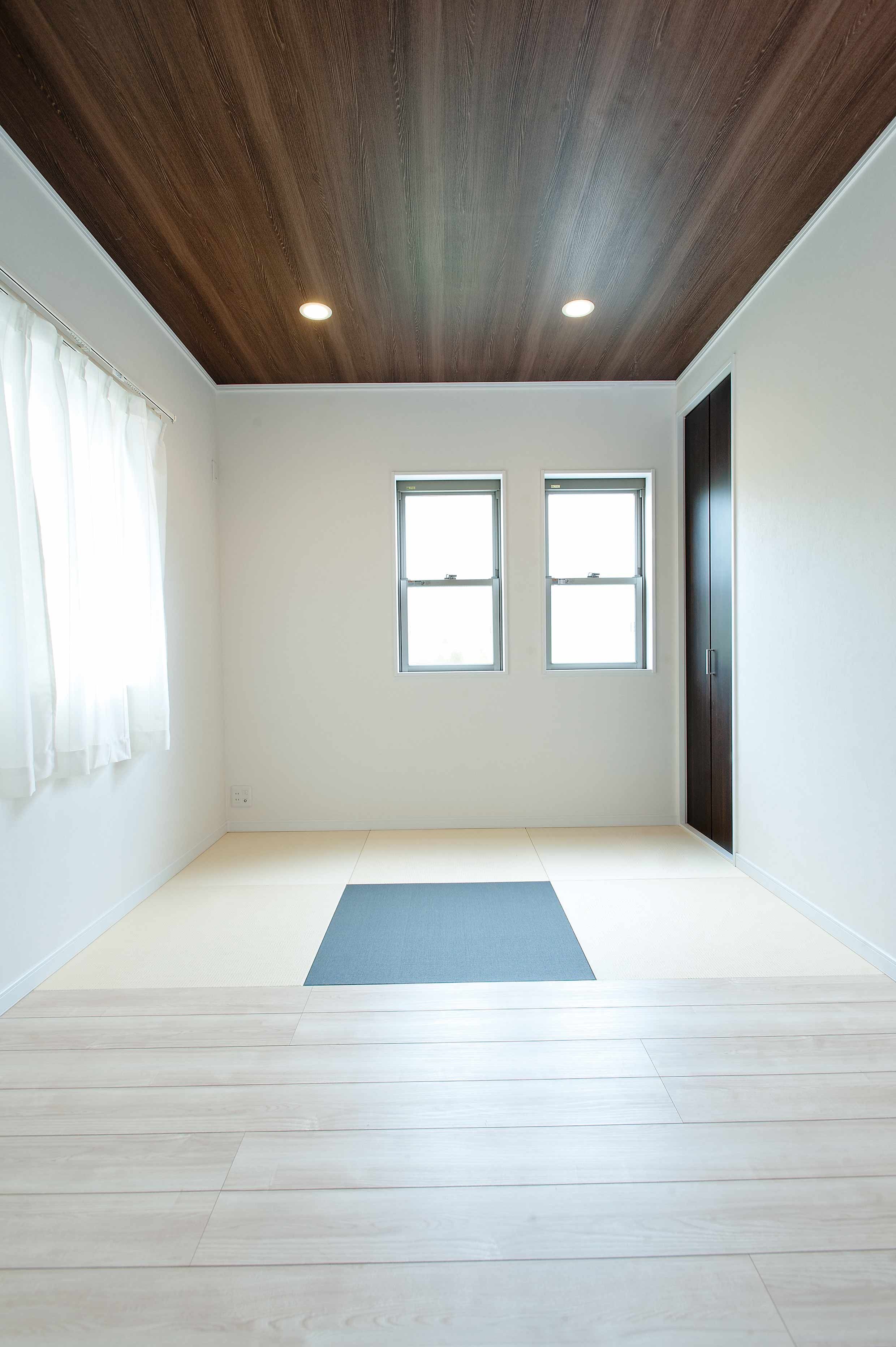 木目天井とネイビーのアクセントクロスの和室和室施工例ギャラリーケイアイプレストは新築一戸建・土地販売の不動産会社。ケイアイスター不動産グループ。