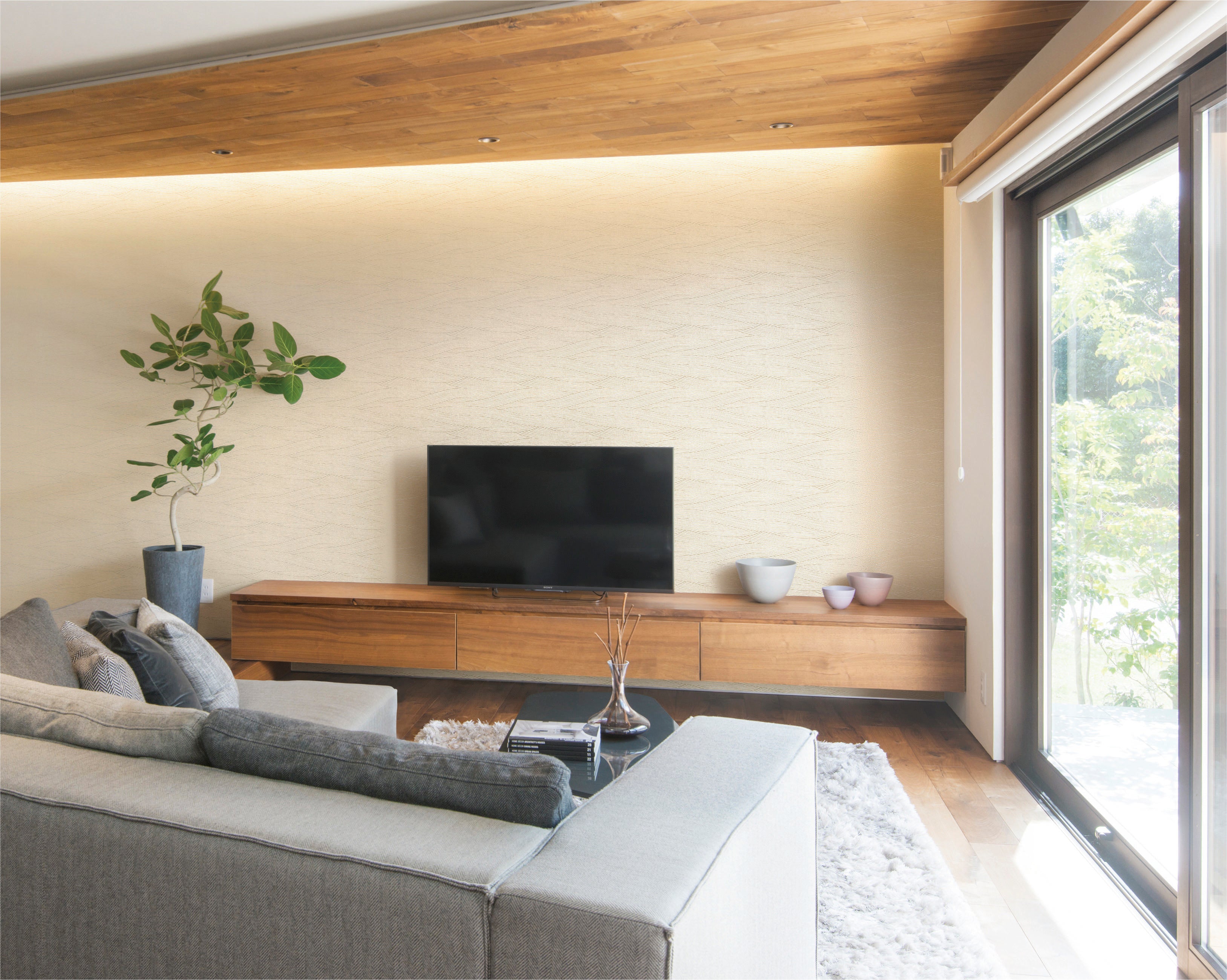 和室にも合うこちらのクロスは, リリからベースLB-9297, 向きの違う凹凸が間接照明との相性バツグンです!,和室クロス,寝室,リリカラクロス ,天井クロス。