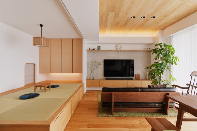 おしゃれなリビングクロスの天井、畳のインテリア画像 75選 - 2025 年 10月Houzzハウズ。