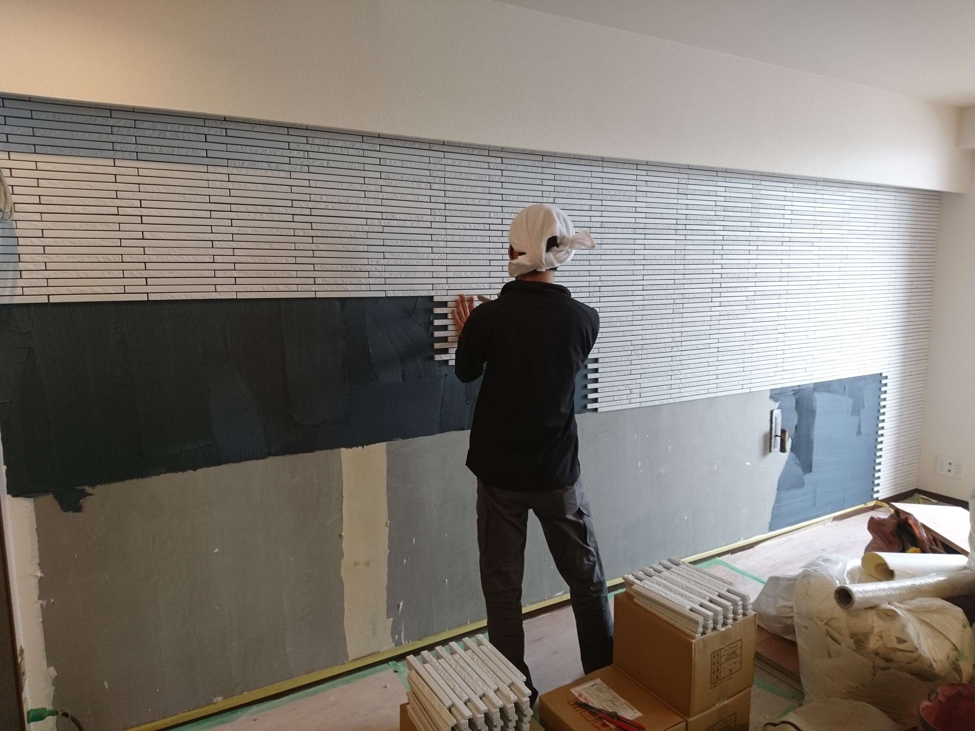 東京都江東区でリビング壁タイル貼外装・内装タイル工事は東京都小平市の株式会社笹子タイル工業。