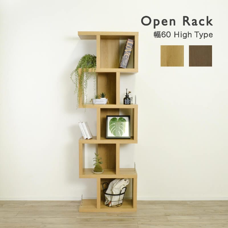オープンラック 木製 ナチュラル 棚 飾り棚 ディスプレイラック S字 シェルフ 5段 おしゃれ 幅60 書棚 収納 フリーラック 本棚 マルチラックブラウン コミック インテリア 絵本棚 大川家具 国産 完成品 「商:超」 「才:15」家具,本棚大川市公式オンライン。