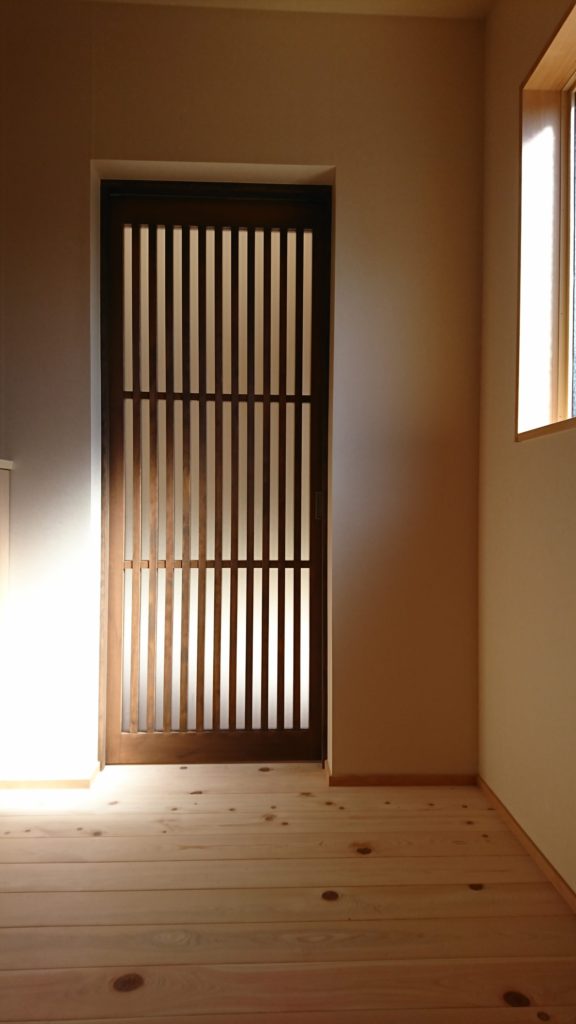 製作したドアが雰囲気出してます。”和風”でほっこりしたリビング - 事例写真「平屋でゆっくり暮らす木の家」注文住宅のハウスネットギャラリ。