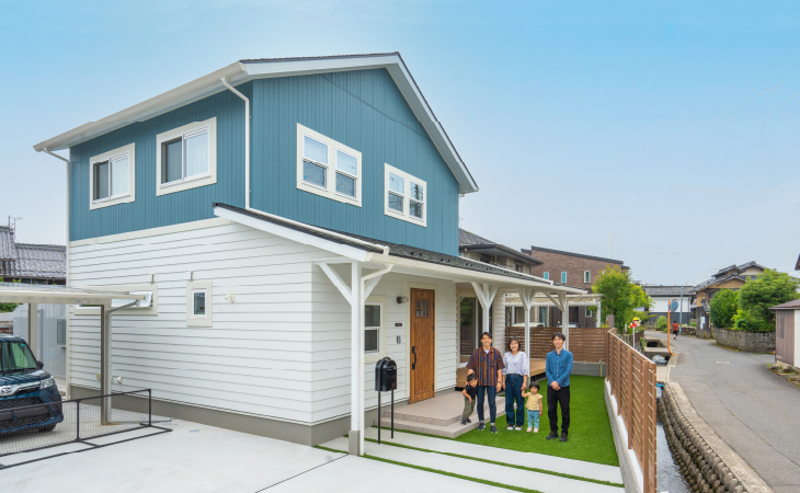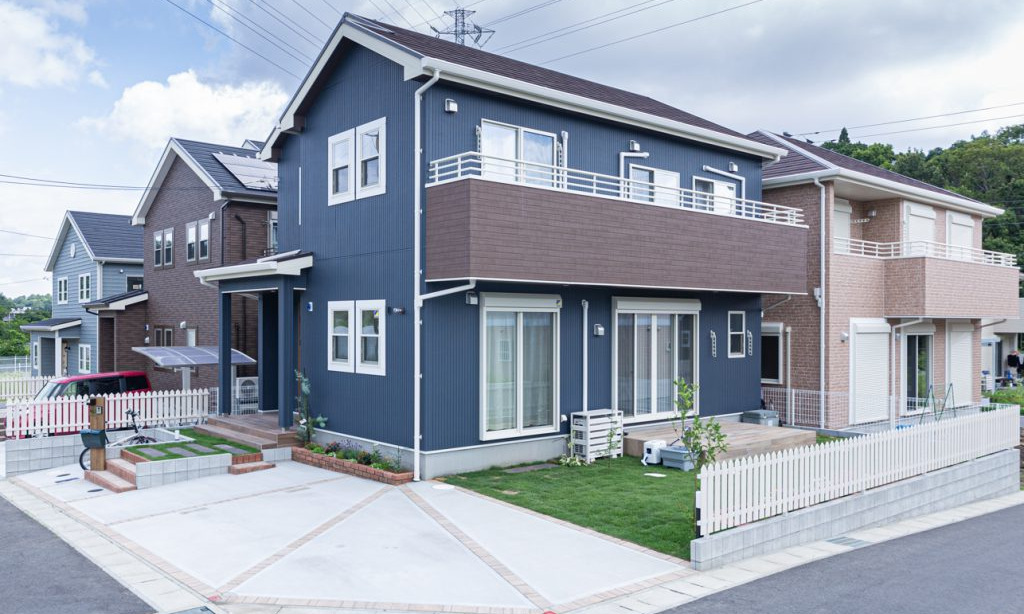 ミッドナイトブルーのラップサイディングが美しいカリフォルニアスタイルの家建築実例西三河・高浜市の注文住宅・建売住宅・土地探しならハウスジャパン。